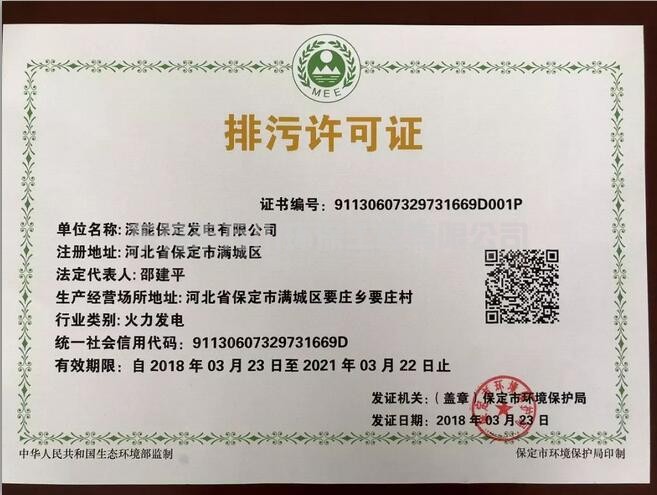 3月23日,保定市環(huán)境保護(hù)局核發(fā)了新的生態(tài)環(huán)境部監(jiān)制的第一張排污許可證: